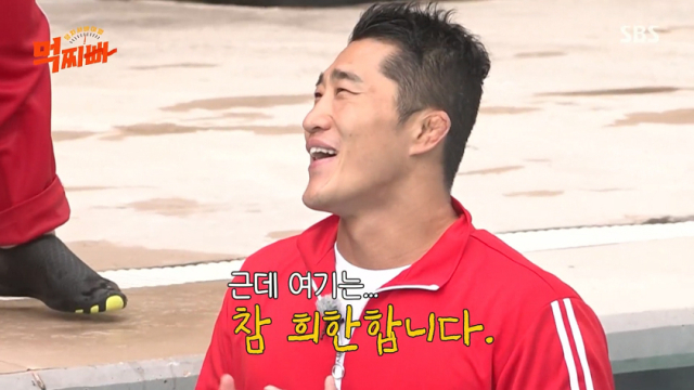 김동현의 캐릭터는 김종민의 순수하고 천진난만한 느낌과는 조금 다릅니다. 김동현은 파이터 출신답지 않은 의외의 겁쟁이 모습이나 허세를 부리다가 당황하는 반전 모습, 멍한 느낌 등이 더 두드러집니다. 이는 김종민의 백치미스러운 면과 스포츠 출신 예능인의 원조격인 강호동이 보여준 반전매력이 섞인 느낌에 가깝습니다. 특히 강호동과 김동현은 모두 투기 관련 운동선수 출신으로, 시청자들은 그들이 실제로는 힘세고 강한 사람임을 알지만, 예능에서는 겁 많고 호들갑스러운 모습을 보이며, 멤버나 게스트들에게 쉴 새 없이 몰이당하는 모습이 주된 예능 포인트가 됩니다.