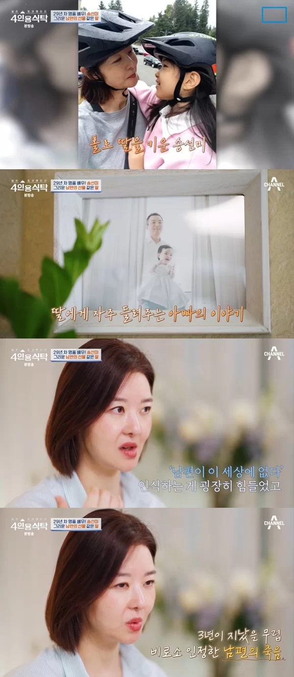 송선미가 2017년에 사별한 남편을 그리워하는 마음을 털어놓았습니다. 어제TV에서 4월 8일에 방송된 채널A의 '절친 토큐멘터리 4인용식탁'에서는 데뷔 29년 차 배우인 송선미(49세)가 등장했습니다.