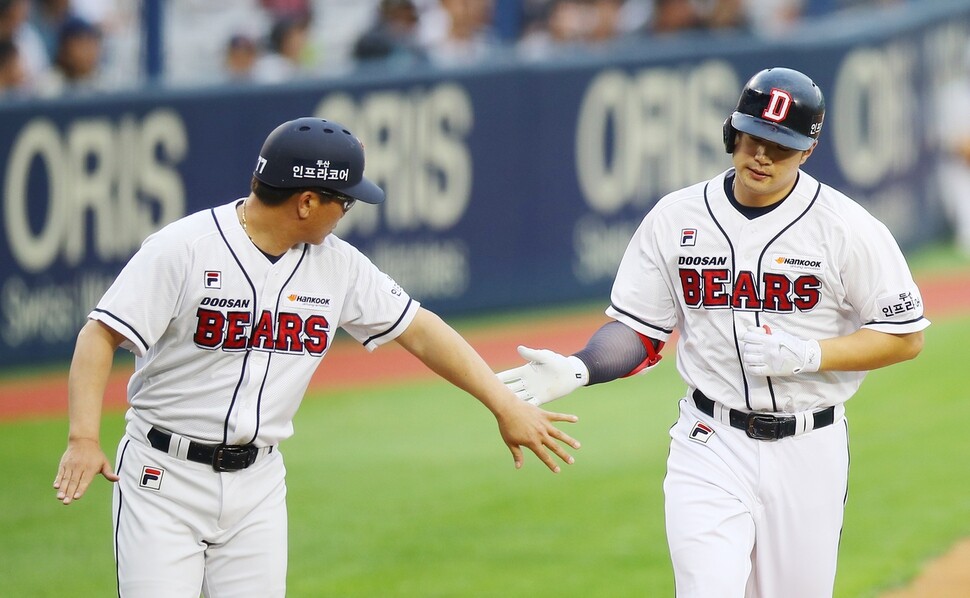 먼저, 그의 얼굴은 무척이나 눈길을 끈다. M.C The Max의 이수와 닮았다는 의견이 있지만, 그가 빛내는 무대는 야구장이다. 그곳에서 그는 장타자로서의 능력을 발휘하며 두산 베어스의 핵심 선수로 부상을 더해가고 있다. 그런 그에게 주인공적인 역할을 할 수 있는 곡은 없었지만, 그가 타석에 서면 재생되는 엠씨더맥스의 'Returns'는 팬들 사이에서 특별한 의미를 지니고 있다.